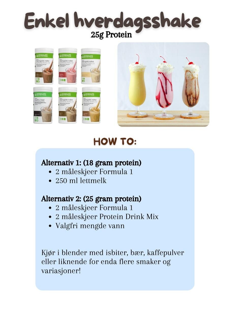 Her vil du finne en mengde sunne og velsmakende oppskrifter, både basert på Herbalife-produkter og generelle kostholdstips. Jeg fokuserer på proteinrik og ren mat, men med et viktig element: lettvinte løsninger. Raske løsninger trenger absolutt ikke å være usunt – det handler om å ha tilgang på gode produkter og smarte ideer. La deg inspirere til å lage næringsrik mat som smaker!